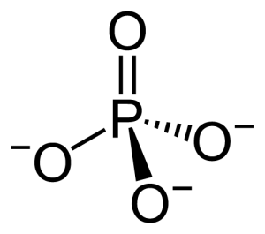 Phosphates are a class of chemical compound containing a phosphate group (one phosphorus atom bonded to four oxygen atoms, represented by the chemical formula PO4), which may have between zero and three hydrogen atoms individually bound to the oxygens. Phosphates are an essential component of many biological molecules, including ATP, DNA and RNA, and also contribute to the structural material of animal bones and teeth as part of calcium phosphate.