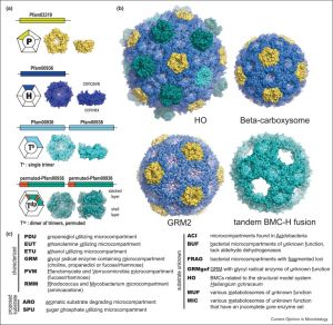 Unlike eukaryotes, prokaryote organelles do not have membranes. Instead, prokaryotes like bacteria construct compartments out of proteins. A Metabolosome is an example of such a compartment, officially referred to as a Bacterial MicroCompartment (BMC). BMCs consist of a polyhedral protein shell around 100-200 nm in size that looks similar to a virus capsid. The proteins that make up the shell typically have (semi-permeable) pores that allow different compounds (substrates and products) in and out of the organelle. They concentrate enzymes and proteins involved in specific metabolic processes in one spot, ensuring their success. The protein shell also acts as a physical barrier, allowing BMCs to conduct metabolic reactions that create toxic or unstable intermediate compounds.